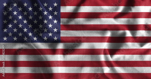 Naklejka premium American flag painting on high detail of wave cotton fabrics .