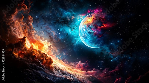 © Raitalinn, Fototapeta premium American Flag Reimagined as a Dazzling Cosmic Pattern in Deep Space