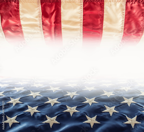 © weyo, Naklejka premium American flag. Usa Flag. Abstract perspective background of stripes and strars with american symbol - Flag.