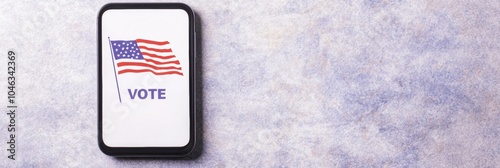 © Ryzhkov, Obraz premium American Flag Voting Concept on Mobile Device Against Textured Background