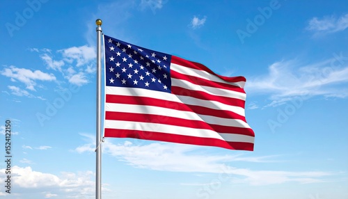 © zenedine, Naklejka premium American flag waving in a clear blue sky (1)