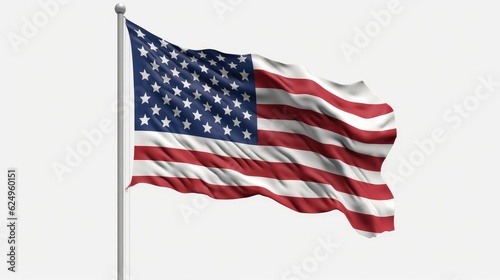 © AKA-RA, Fototapeta premium American flag waving isolated on white background. The USA flag on a white background. National flag of USA. Generative AI