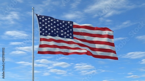 Fototapeta premium American Flag Waving Proudly Under a Clear Blue Sky