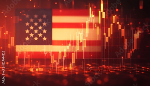 © Ilja, Fototapeta premium American Flag with Abstract Financial Chart, Digital Illustration of Stock Market, Vector Graphic.