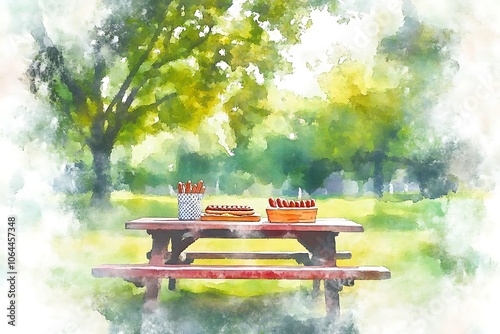 © A to Z, Obraz premium American flags with picnic trash
