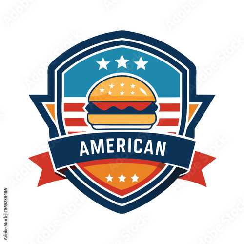 © Saim Art, Obraz premium American food badge logo icon vector isolated
