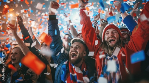 Fototapeta premium American football fans celebrating with confetti falling around them