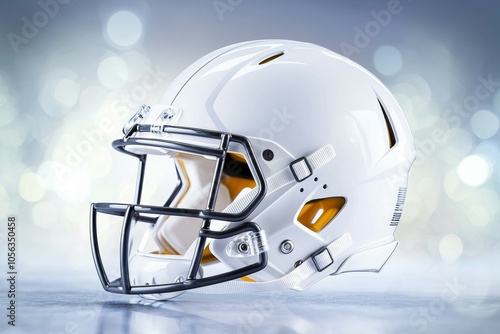 © Space Priest, Naklejka premium American football helmet. Backdrop with selective focus and copy space for text