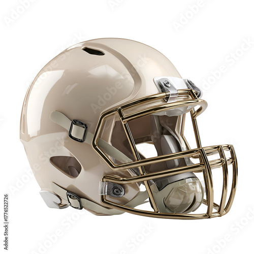 © afikurrahman, Fototapeta premium American football helmet with gold facemask on black background