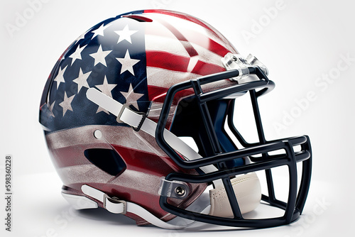 Fototapeta premium American football helmet with printed American flag, white background