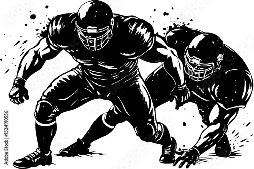 Obraz premium American Football Players in Action Powerful Graphic Illustration, football, players, sports, defense, masculine, intense, impact, powerful, graphics, visual, physical, rush, contest, victory, match,