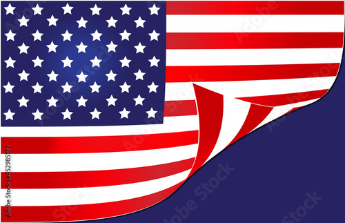 © MightyBlue, Naklejka premium American graphic flag with the edge of flag curled up leaving space for text to be placed on layer below flag