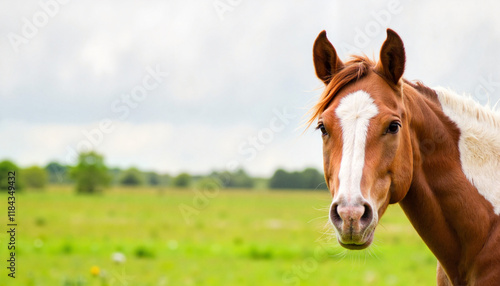 Naklejka premium American Paint Horse gazing in open pasture, serene beauty