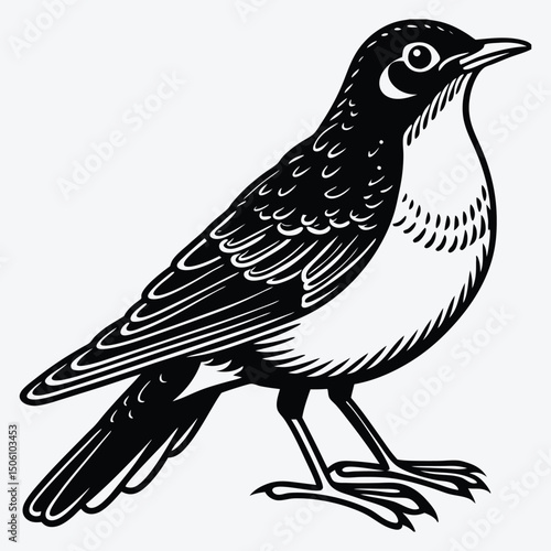 Fototapeta premium American Robin line art White background illustration Generative Ai.