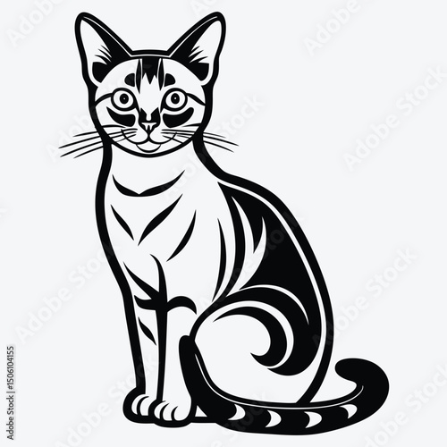 © lokshmon, Obraz premium American Shorthair line art White background illustration Generative Ai