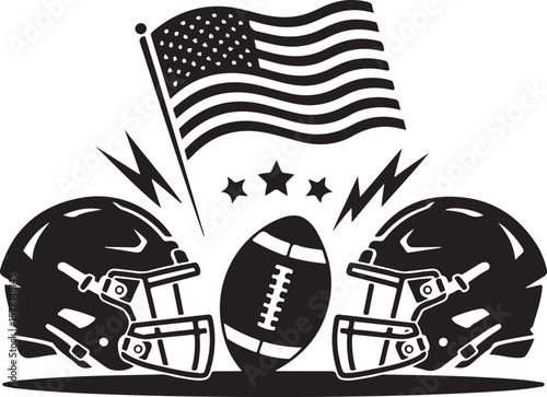 © BINDASBIPLOB, Naklejka premium American Sports Helmet & Flag SVG | Black Vector Art