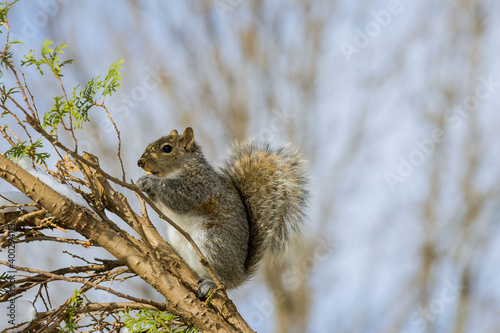 © ungvar, Obraz premium American squirrel eats a nut in winter feeding with walnuts