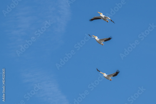 Fototapeta premium American white pelicans in flight.