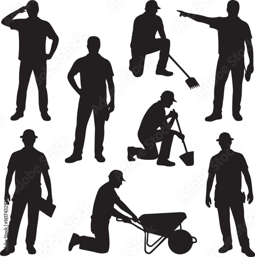 © vector design, Obraz premium American Worker Silhouette IllustrationHardworking Laborer Silhouette VectorConstruction Worker with Tools SilhouetteStrong American Worker Outline ArtIndustrial Worker Silhouette Design