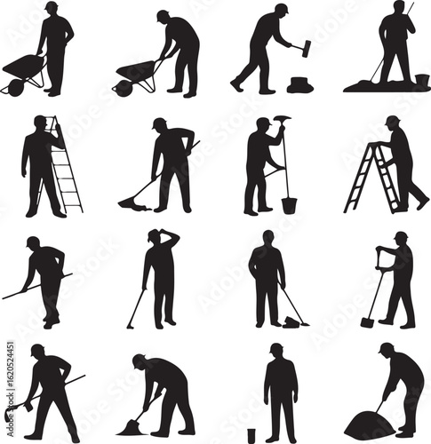 © vector, Obraz premium American Worker Silhouette IllustrationHardworking Laborer Silhouette VectorConstruction Worker with Tools SilhouetteStrong American Worker Outline ArtIndustrial Worker Silhouette Design