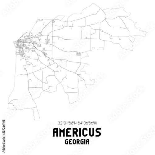 © Rezona, Naklejka premium Americus Georgia. US street map with black and white lines.