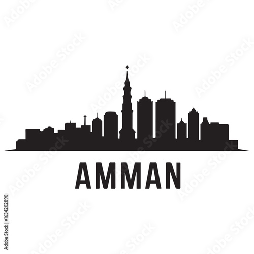 © Nargis, Naklejka premium Amman skyline, monochrome silhouette. Vector illustration. Vector black silhouette. with white background.
