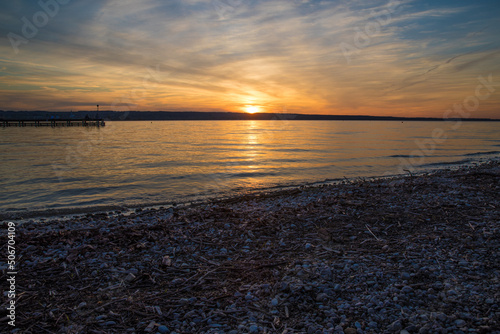 Naklejka premium Ammersee, Bayern, abendrot, meer, wasser, ozean, sonne, beach, himmel,...