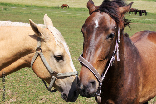 © Kajano, Obraz premium Amorous Horses on the green Pasture
