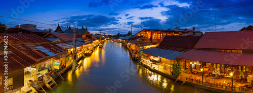 Fototapeta premium Amphawa market canal, the most famous of floating market at sunset and cultural tourist destination on
