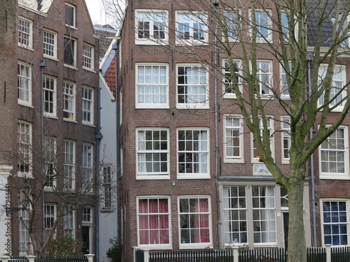 Fototapeta premium Amsterdam Begijnhof Traditional House Facades with Winter Tree