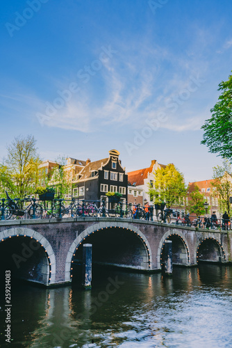 Naklejka premium Amsterdam bridge on sunny day with blue skies in summer