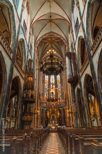 Fototapeta premium Amsterdam, canal, boats, historic church, travel photography, Netherlands, Dutch architecture, waterway, tourism, scenic view, St. Nicholas Basilica, European travel, river cruise, cityscape, urban ca