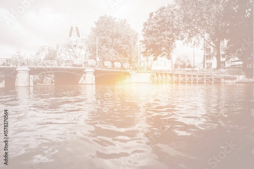 © vectorfusionart, Fototapeta premium Amsterdam canal bridge with bright light