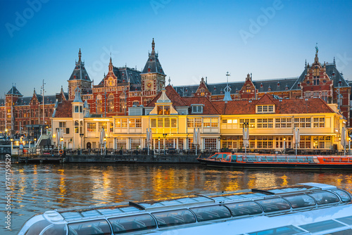 Naklejka premium Amsterdam Centraal station, the largest railway station in Amsterdam, North...