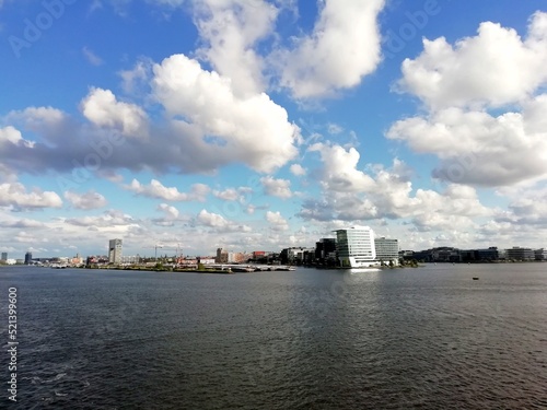 Naklejka premium Amsterdam highlights, panoramic buildings and channels of Amsterdam, Netherlands