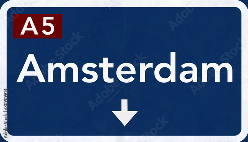 © boscorelli, Fototapeta premium Amsterdam Netherlands Highway Road Sign