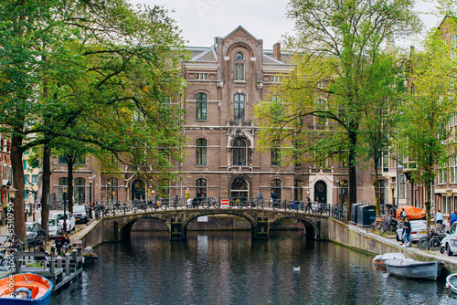 Fototapeta premium Amsterdam, Netherlands September 5, 2017 : Streets, canals and architecture of Amsterdam. Netherlands