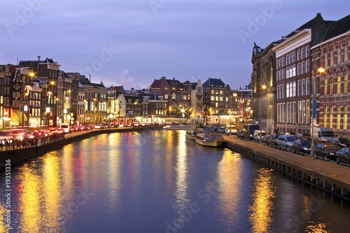 © Nataraj, Fototapeta premium Amsterdam nocą w Holandii