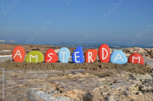 © yournameonstones, Fototapeta premium Amsterdam on stones