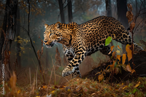 Obraz premium amur leopard in forest, generated AI, generated, AI