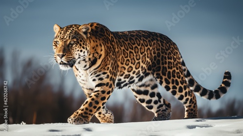© Magiurg, Obraz premium Amur leopard in nature in winter. Ai generated