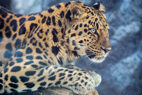 Obraz premium Amur leopard. It is a predatory mammal from the feline family. A unique endangered species.