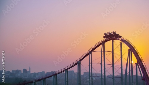 Naklejka premium Amusement park silhouette Loop Thrilling roller coaster ride
