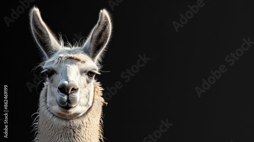 © TheWaterMeloonProjec, Obraz premium Amusing llama meme with black background for personalized text