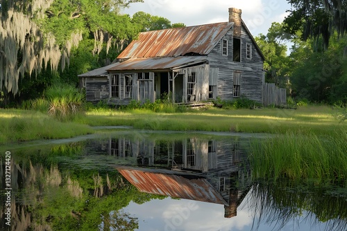 © MSTKolpana, Obraz premium an abandoned house situated near a swampy area