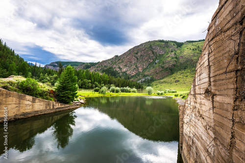 © Starover Sibiriak, Fototapeta premium An abandoned hydroelectric power station. Altai Republic, Russia