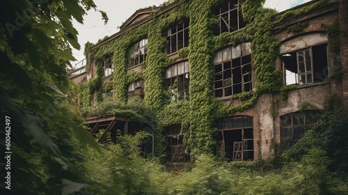 © 016Graphics, Obraz premium An abandoned overgrown old factory, Generative AI