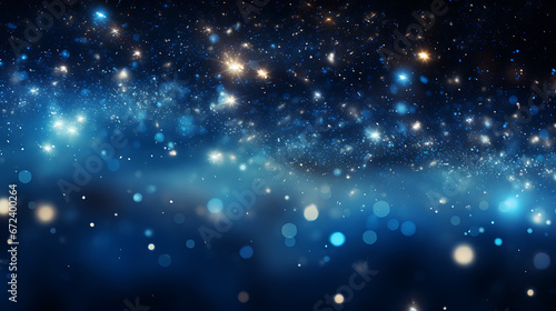 Obraz premium An abstract backdrop with electric blue and silver particles. Celestial starlight shine particles bokeh on a cosmic navy background. Silver foil texture created with AI technology