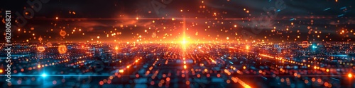 © Elle Arden , Obraz premium An abstract background for technology showing a high tech interface with a dynamic composition and lots of lights.