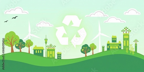 Fototapeta premium An abstract background of sustainability, green energy symbols, recycling motifs